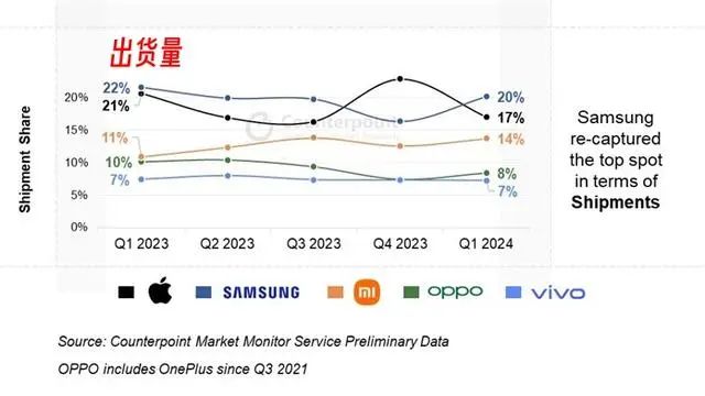 在全球手机市场,苹果与三星的销量冠军之争一直颇为激烈。